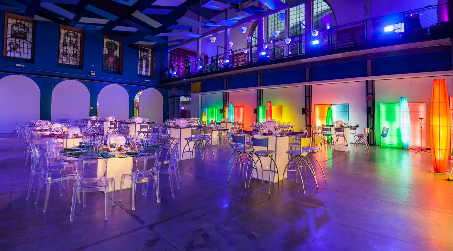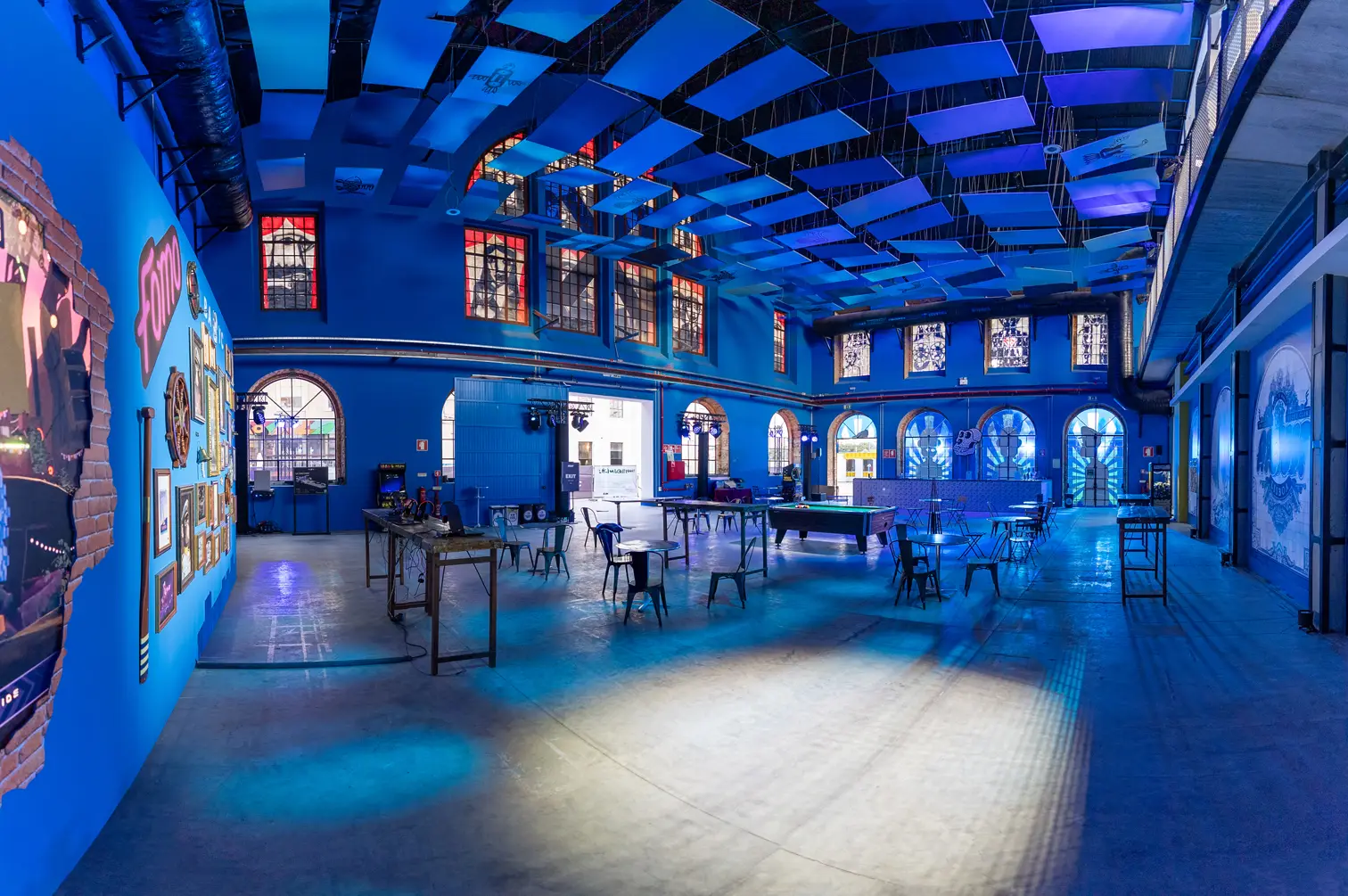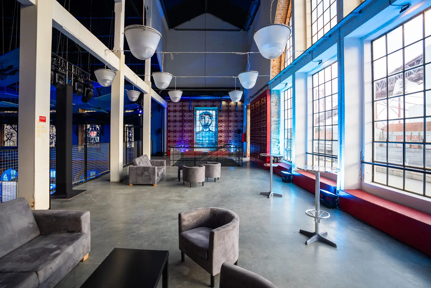 Antiga fábrica com uma estética vibrante. O espaço acomoda cerca de 250 pessoas sentadas para refeição, 500 em formato cocktail, 350 em plateia e 900 em concertos.