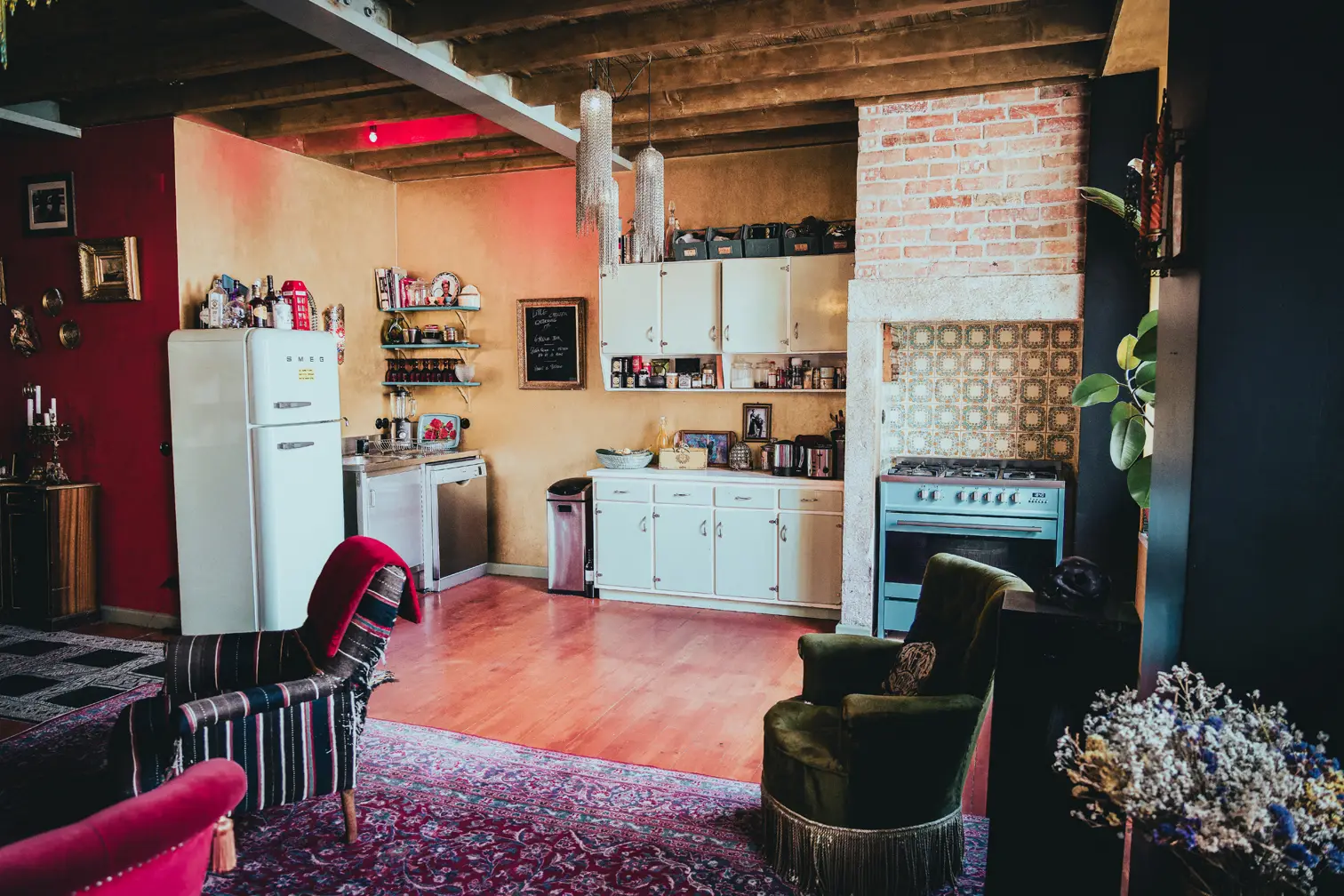 Espaço ideal para festas e pequenos eventos, com capacidade para até 40 pessoas. Inclui dois terraços exteriores mobilados e uma sala com mesa de refeição, zona de estar e cozinha. No mesmo local, há a possibilidade de alugar outro espaço com 150m2 em open space.