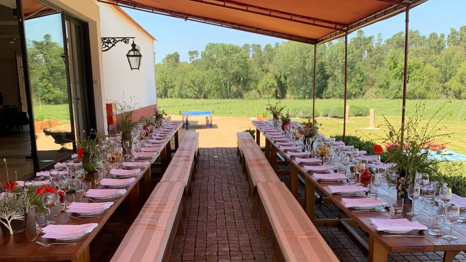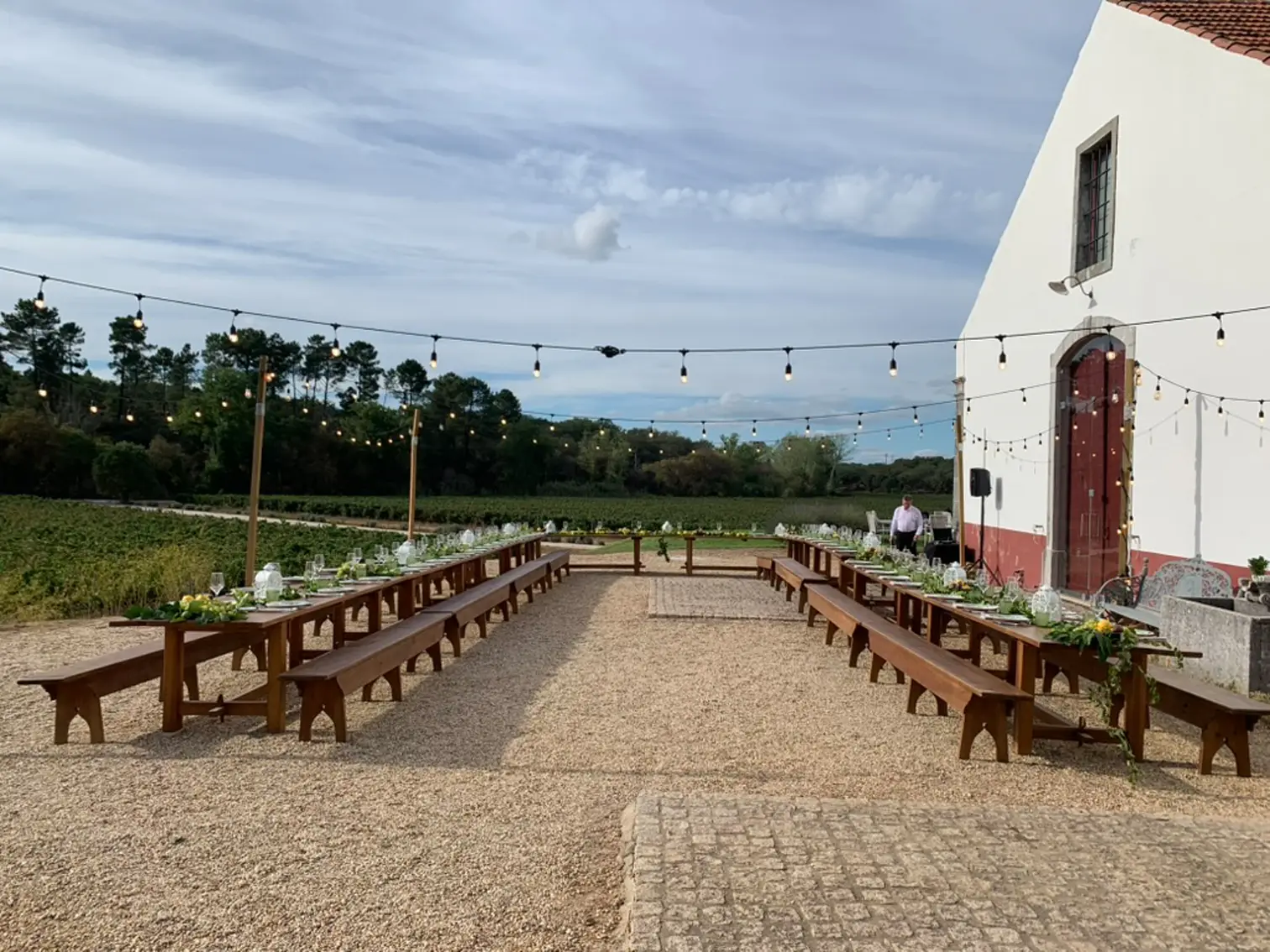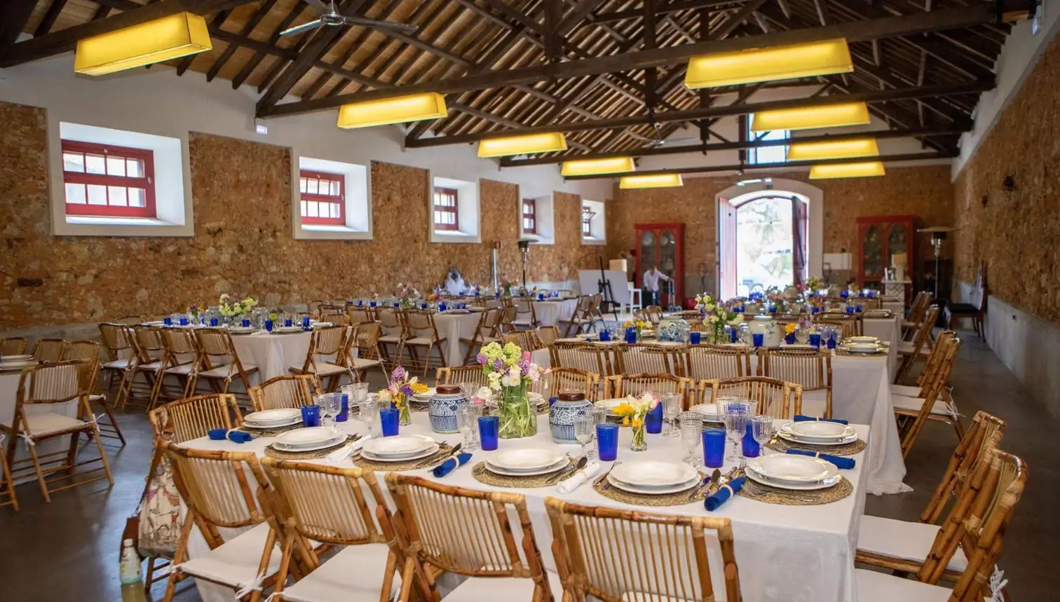Espaço versátil, ideal para festas, casamentos, aniversários, eventos corporate ou reuniões, em ambiente tranquilo e integrado na natureza. O espaço tem a capacidade para sentar até 180 pessoas, dispõe de 3 casas de banho e é fresco. O espaço está conectado a uma área de serviço destinada a catering, com 65m2, e que inclui: abastecimento de água e eletricidade, bancada de inox, ficha trifásica, 4 circuitos de tomadas, lava-loiça, câmara frigorífica industrial e arca congeladora; e que está em conformidade com as normas legais de higiene e segurança. Esta antiga vacaria dá para um jardim com vista para 30 hectares de vinha. Também inclui área de estacionamento.