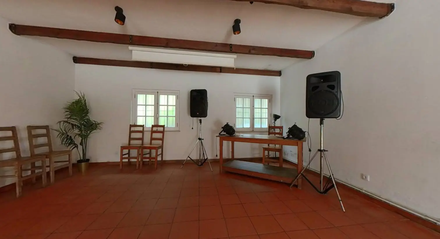 Espaço composto por duas salas que podem funcionar de forma interligada ou independente, cada uma com a sua entrada distinta. Inclui: churrasco, cozinha, tela de projeção, ar condicionado, Wi-Fi e parque de estacionamento.